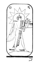 In the words of the Psalmist, "Thou wilt light my candle; the Lord my God will enlighten my darkness." The candle flame is not a mere figure of speech. It is visible to the spiritual sight, and many illumined artists show it burning above the heads of the angels, nature spirits, and also of human beings. We see it again in many of the cards of this Egyptian series.