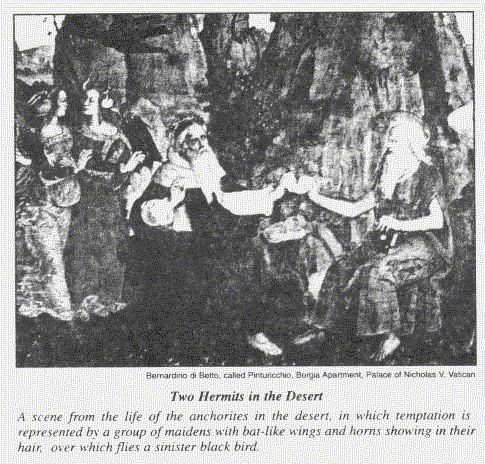 A formal or technical terminology was evolved by the desert fathers (eremites, monks, anchorites) to articulate the stages by which the whisper of temptation works its way to becoming the woe of an ingrained immoral habit. The authors, veterans of soul wars, knew that half the battle was won if the enemy could be detected. And the enemy, no matter what its outer guise, was demonic. Twentieth century material man, grownup in these matters, consigns demons to late night movies, adolescent T-shirts, and tabloid-magnified cult practices. Yet these early Christian soul pioneers knew that demons are ubiquitous and intimate, closer than hands and feet. They seek to ambush and waylay the spiritual pilgrim at every step, particularly as he advances in piety and purity.