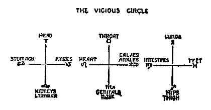 Physiologically this sign rules the kidneys, the lumbar region of the spine, the skin, the ureters, which are the tiny ducts running between the kidneys and the bladder, and the vaso-motor system. The afflictions from with the Libran is most likely to suffer are Brights's disease, lumbago, disturbed urine. The disease depends greatly upon the planets afflicting: if Saturn, there is a scarcity of urine; if Jupiter, an excess, etc. Nephritis, eczema, and diabetes are also diseases from which the Libran is likely to suffer.