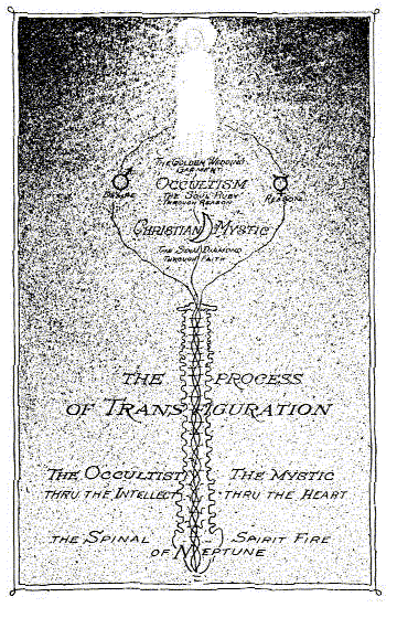 As the Christ said, "I go to my Father," when He was about to be crucified, so also the Servant of the Cross who has made the most of his opportunities in the visible world is allowed to enter the glory of his Father Fire, the invisible Shekinah Glory. He ceases then to see through the dark glass of the body, and beholds his Father face to face in the invisible realms of nature.