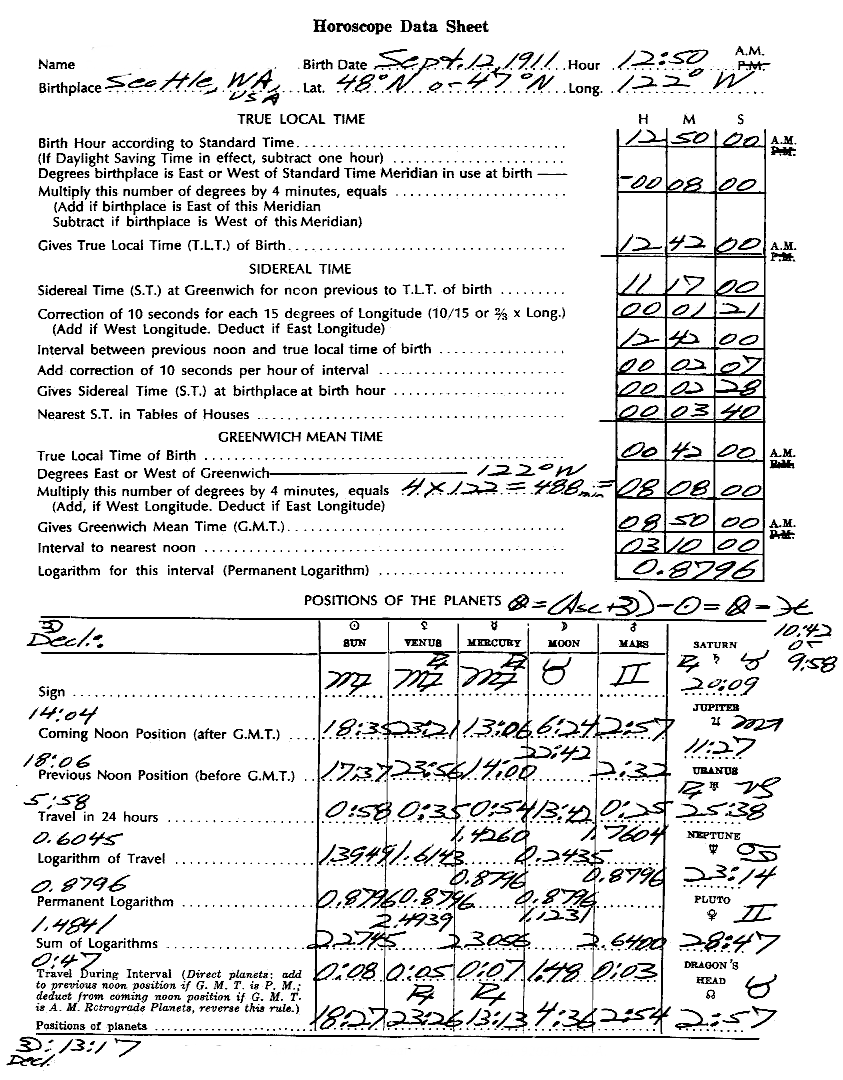 1. Please cast a horoscope for Sept. 12, 1911, 12:50 a.m. Seattle. Progress the angles for 45 years and interpret the results. (optional)