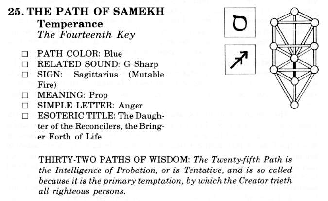 Astrologically, Samekh belongs to Sagittarius, sign of aspiration, idealism and attainment on physical, mental and spiritual planes. The pendulum swings in its full arc, from the heights to the lowest point and up again to the heights.