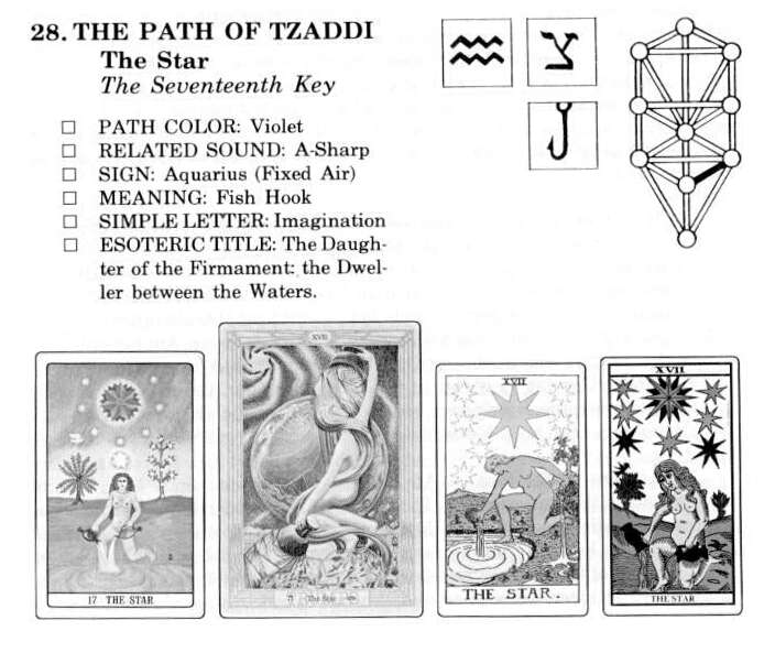Tzaddi has an esoteric connection with both Teth, the ninth letter, whose name suggests the "Tet" of Osiris, and the Tau, which has the sound of T but also of S. It also connects with Schin, which has the sounds both of Sh and S.
