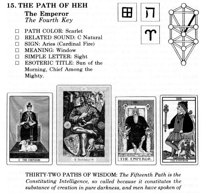 Kabbalists look upon the Iris-Urania as symbolic of the Feminine in Exaltation. Her twofold Mystery, shown in the Arcanes II and III, are signified biblically in the two H's of the Tetragrammaton: J-H-V-H. The letter He is also associated with E, the Hebrew alphabet having no vowels, but is generally termed H. The Tetragrammaton is the Greek name for the Sacred Four Letters which in the Hebrew stand for the Ineffable Name of God: Jod-He-Vau-He. The sacred Name was never pronounced except by the High Priest in the inmost sanctuary of the Temple, and certain substitutes for the Word were chanted under cover of the holy choir, for even these substitutes might not be used lightly. The word Adonai was such a substitute. It was only at special times that the Name was pronounced by the High Priest, and it was accompanied by the loud blast of the trumpet so that the magic intonation might never be heard by the unworthy.
