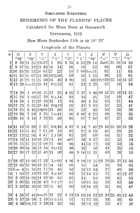 26. Simplified Scientific Ephemeris of the Planets' Places: