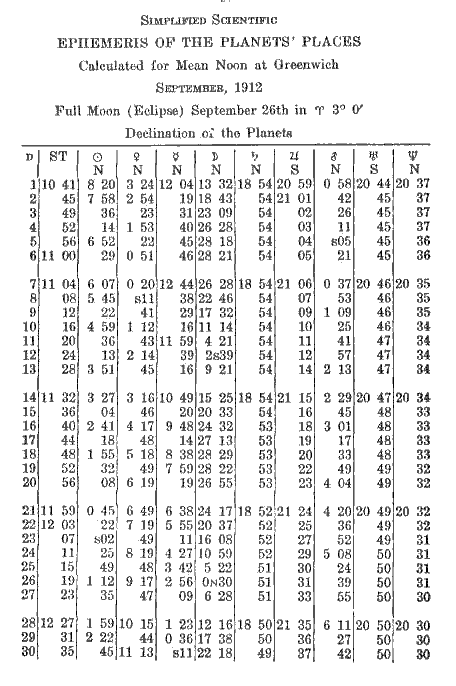 30. Simplified Scientific Ephemeris of the Planets' Places: