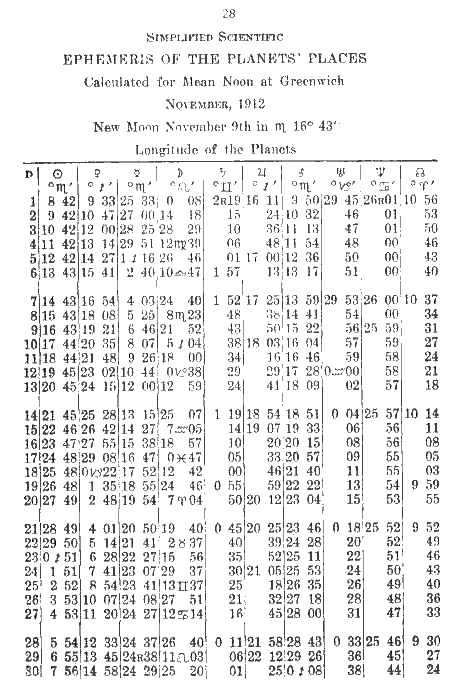 28. Simplified Scientific Ephemeris of the Planets' Places:
