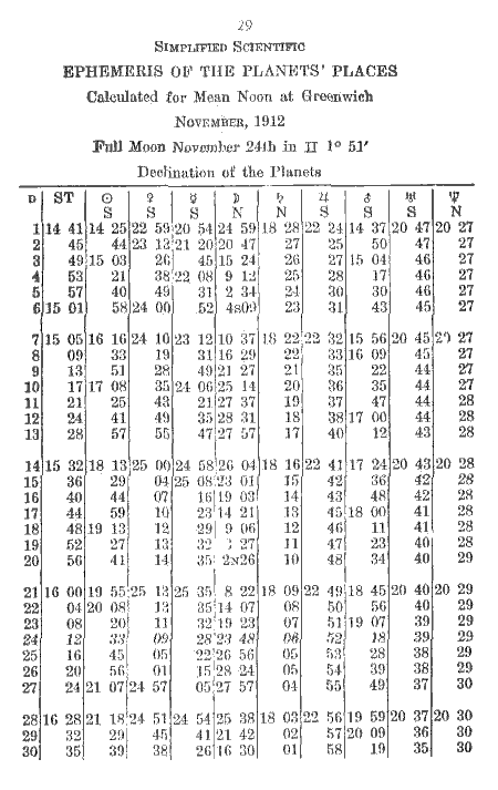 29. Simplified Scientific Ephemeris of the Planets' Places: