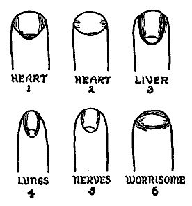 We find that there are common signs on the angles, which is a testimony of a flexible character, difficult to rouse from sickness or trouble into which the native may fall. The Moon in conjunction with Saturn in Aquarius, the sign which governs the ankles and lower parts of the limbs, is evidence of a poor circulation; and Uranus in Leo, the sign of the heart, in opposition to the Moon and Saturn shows that there is a fluttering of that —