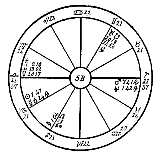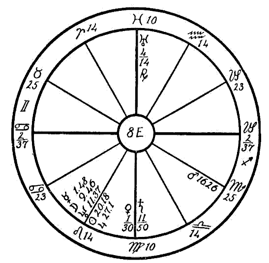 In the second case we will use a plain figure, as the hour of birth is lacking. This is the horoscope, numbered 8B, of a woman born November 12th, 1895.