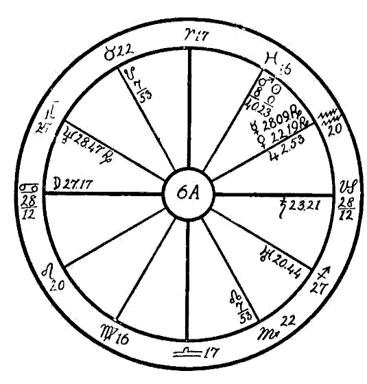We will use two horoscopes by which we will show the effects of Saturn in Capricorn whereby diseases are produced of vastly different natures. We will first use horoscope 6A, which is that of a man born February 19, 1902, 3:00 P.M.