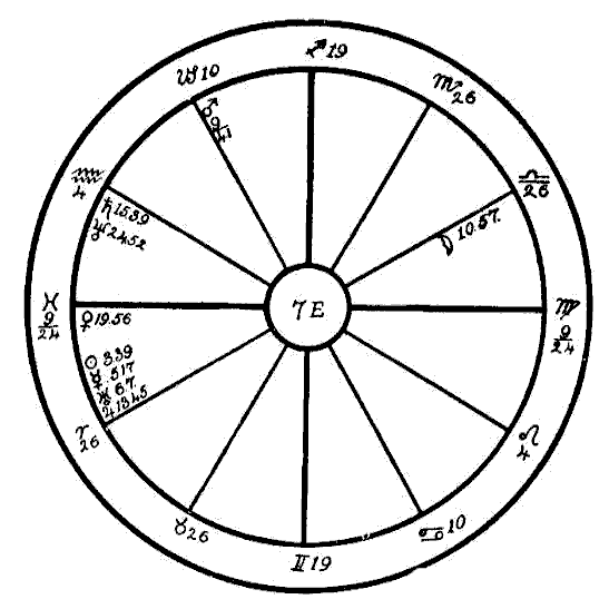 The horoscope here shown is that of a well-to-do man who spoiled his life by excesses of all kinds. He was born on August 28, 1881, at 11 P.M.