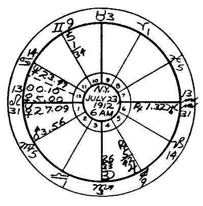 In the first five Independent Study Modules you learned how to find the Sidereal Time of a birth and to place the proper sign and degree of the zodiac upon each of the twelve houses. The last three Astrology Independent Study Modules have been devoted to calculation of the planets' places in the zodiac, and now the time has come to enter them in the horoscope. When they have been entered in their proper houses, the horoscope is complete. This will, therefore, be the subject of our present Astrology Independent Study Module.